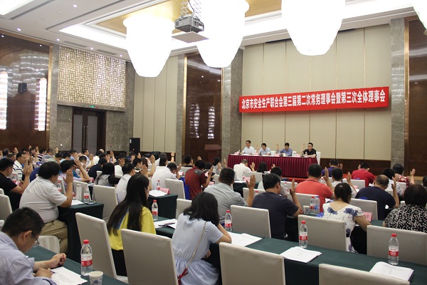 2018年7月20日,安聯(lián)召開三屆二次常務(wù)理事會暨第三次全體理事會,總結(jié)回顧了近兩年工作,通報了安聯(lián)年度審計(jì)和監(jiān)事工作,審議通過了關(guān)于章程修訂、法人變更等議題。市安全監(jiān)管局黨組副書記、副局長,市安聯(lián)會長唐明明同志出席會議并講話;91名理事代表和安聯(lián)秘書處有關(guān)負(fù)責(zé)同志參加了會議。