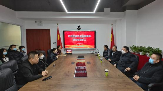 2023年1月17日下午,市應急管理局一級巡視員、市安聯(lián)會長唐明明同志、政治部主任孫雷同志在局機關工會、局辦公室相關負責同志的陪同下來到市安聯(lián)辦公區(qū)新址看望慰問局屬社團干部職工,送來新春祝福,局屬社團全體干部職工參加了慰問活動。