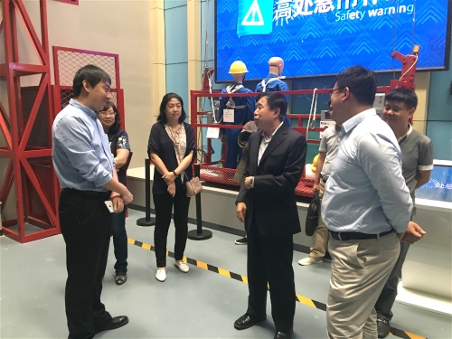 目前,實(shí)訓(xùn)基地一期加油站、建筑施工、高處懸吊作業(yè)及變配電室4個(gè)行業(yè)領(lǐng)域現(xiàn)場(chǎng)施工及隱患設(shè)置工作均已完成,正在調(diào)試相關(guān)設(shè)備設(shè)施。安科院負(fù)責(zé)同志詳細(xì)介紹了實(shí)訓(xùn)基地整體規(guī)劃、4個(gè)場(chǎng)景現(xiàn)場(chǎng)隱患設(shè)置情況、動(dòng)畫展示模塊隱患設(shè)置情況等內(nèi)容。賈太保副局長(zhǎng)實(shí)地體驗(yàn)了運(yùn)用VR技術(shù)設(shè)置的加油站隱患場(chǎng)景,并對(duì)VR場(chǎng)景展示模式,實(shí)訓(xùn)基地與本市典型事故等內(nèi)容作重要指示。