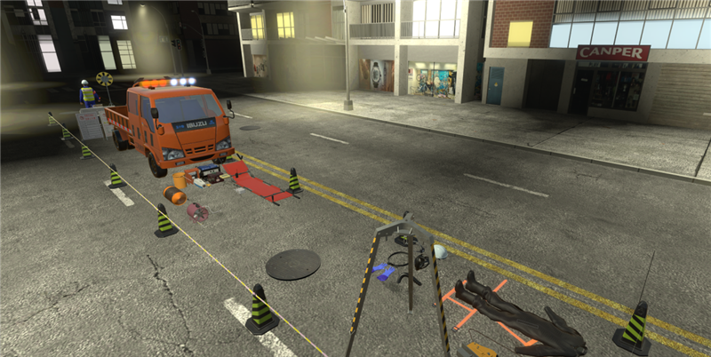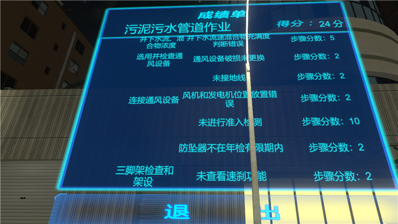 “兩場景”包括管道清淤作業(yè)虛擬場景和再生廠格柵維修有限空間作業(yè)虛擬場景,涵蓋了北京排水集團(tuán)有限空間作業(yè)的主要范圍;兩模式為練習(xí)模式和考核模式,既可以模擬訓(xùn)練,又可以量化考核。