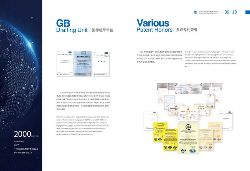 我公司一直以“守正、慎獨、共享”為企業(yè)文化底蘊,堅持以“天覆地載、萬物悉備、莫貴于人”的人才培養(yǎng)理念。我們認為企業(yè)第一位產出的應當是卓越的員工,其次才是一流的產品,堅持把員工的全面發(fā)展作為企業(yè)經營的核心。我公司于2000年在包裝行業(yè)內率先通過了ISO9002國際質量體系認證;2009年我公司與中國相關協(xié)會一起參與并制定了關于“收縮包裝機”與“臥式枕型接縫式裹包機”的國家標準,為中國包裝機械走向世界奠定了堅實的基礎。