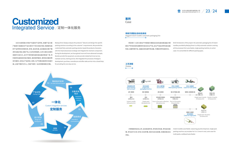 從公司成立至今,北京大森依托總部日本大森機械工業(yè)株式會社的先進技術,結合自身多年的技術創(chuàng)新和沉淀,先后開發(fā)和引進了全自動枕式包裝設備、高速裝箱裝盒設備、拉伸膜和自粘膜包裝設備、各式理料線和其他輔助設備等,被廣泛應用于方便食品、休閑食品、冷凍食品、海產品、醫(yī)藥、生鮮果蔬、烘焙等各個行業(yè)和領域。