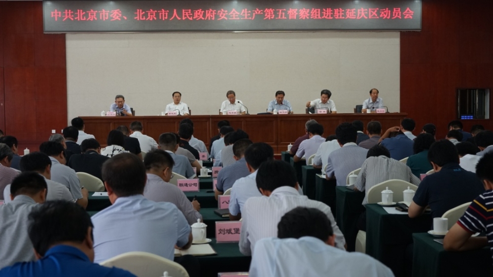 2017年9月4日上午,中共北京市委、北京市人民政府安全生產(chǎn)第五督察組在延慶區(qū)會議中心召開安全生產(chǎn)督察工作動員會議和匯報會。動員會由延慶區(qū)區(qū)委副書記、區(qū)長穆鵬主持,督察組組長、北京市國有企業(yè)監(jiān)事會原主席趙崇捷同志作動員講話,督察組副組長、市安全監(jiān)管局副巡視員謝清順同志通報督察工作總體安排,延慶區(qū)區(qū)委書記李志軍同志作表態(tài)發(fā)言。